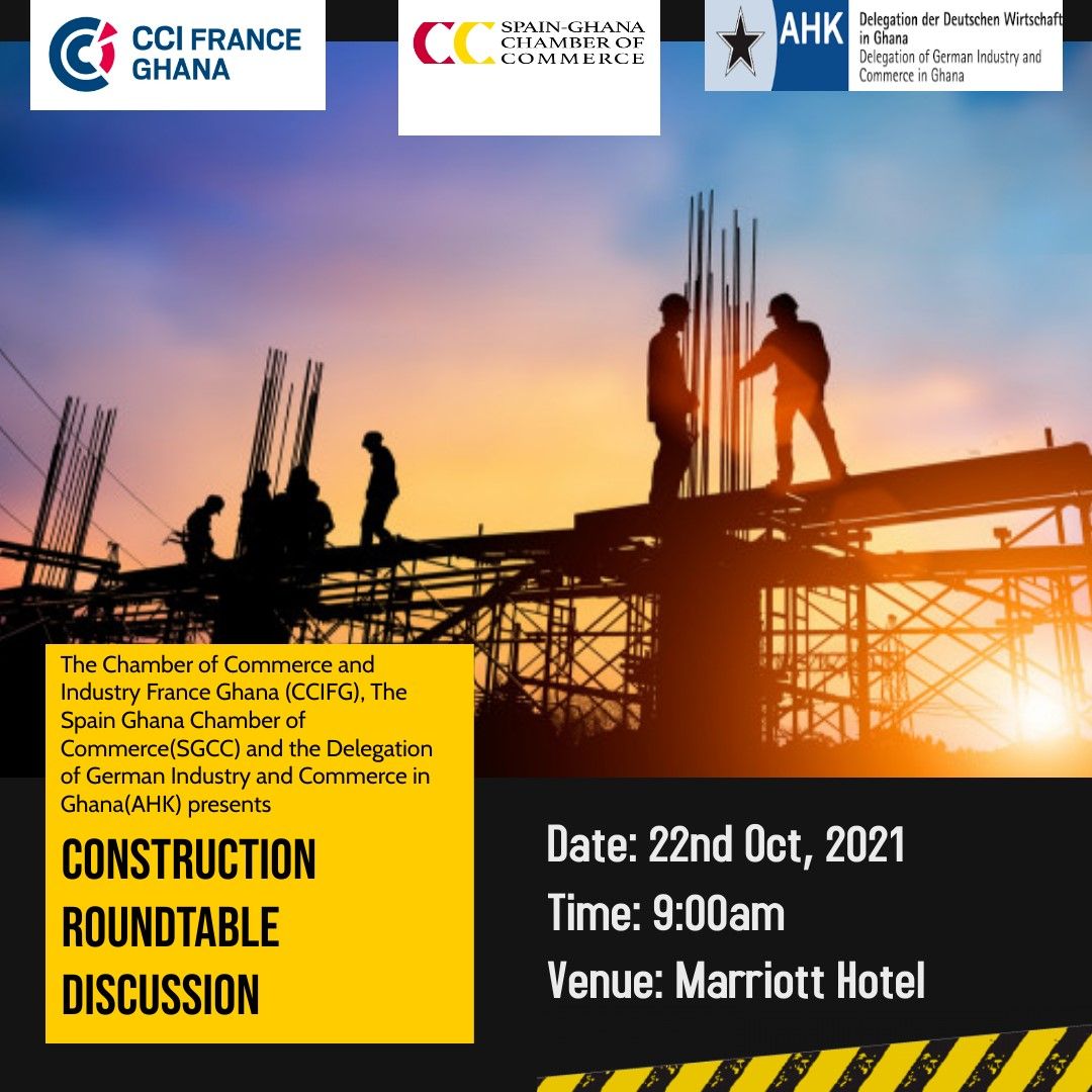 The French Chamber of Commerce and Industry Ghana (CCIFG), the Spain Ghana Chamber of Commerce (SGCC) and the Delegation of German Industry and Commerce in Ghana (AHK Ghana) presents a roundtable discussion for members in the construction industry.
