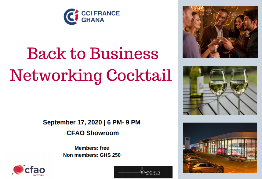 In partnership with CFAO Motors, CCIFG is organizing its signature Back To Business Networking Cocktail on September 17th from 6 to 9 PM at CFAO Showroom.