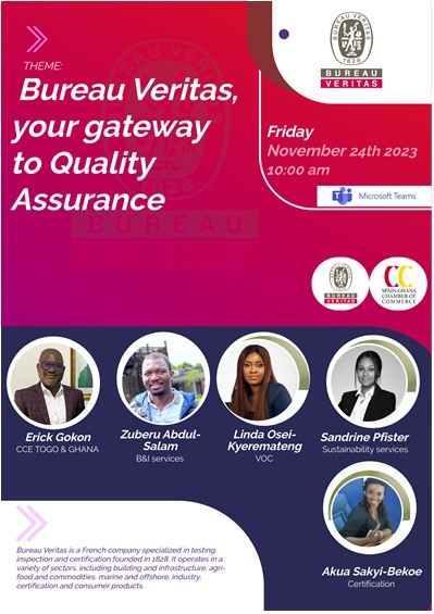 Please be informed of Bureau Veritas upcoming webinar themed, “Bureau Veritas, Your Gateway to Quality Assurance” with the Spain Chamber of Commerce which is expected to come off on the 24th of November, 2023 at 10am GMT.