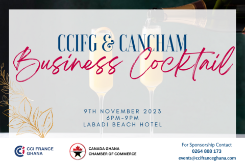 Interact with fellow members from the Canadian and French Chambers of Commerce in Ghana in a relaxed mood over some drinks & canapés at a networking cocktail this November.