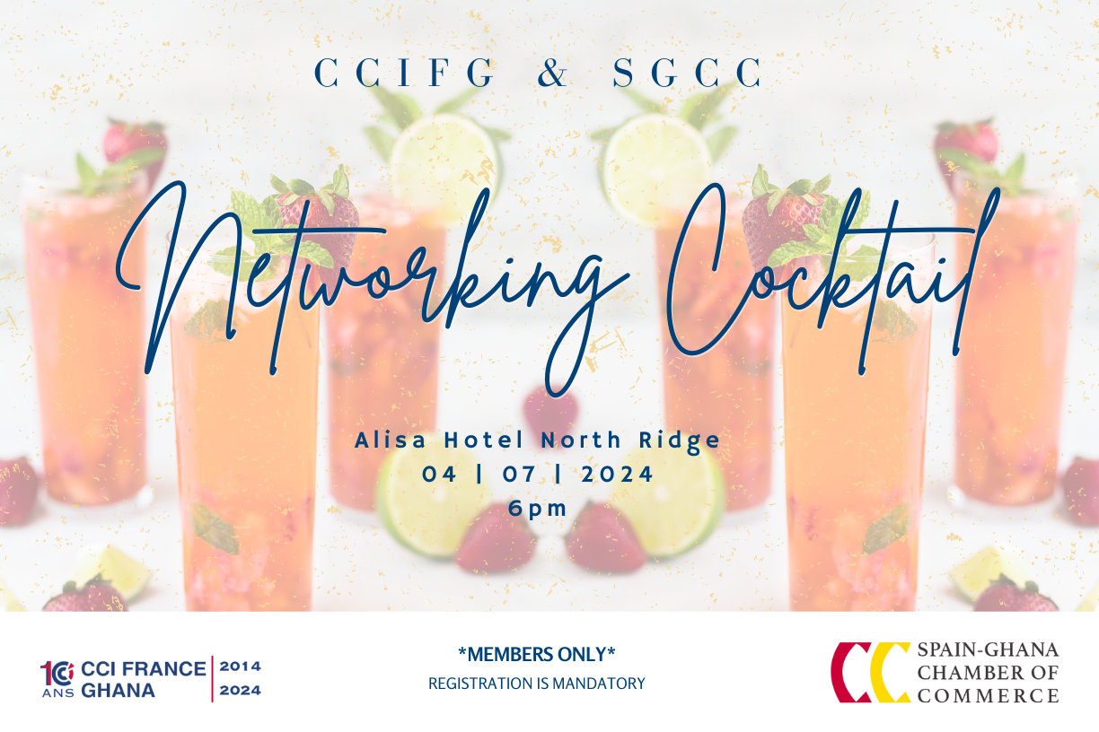 Interact with fellow members from the Spanish and French Chambers of Commerce in Ghana in a relaxed mood over some drinks & canapés at a networking cocktail this July.