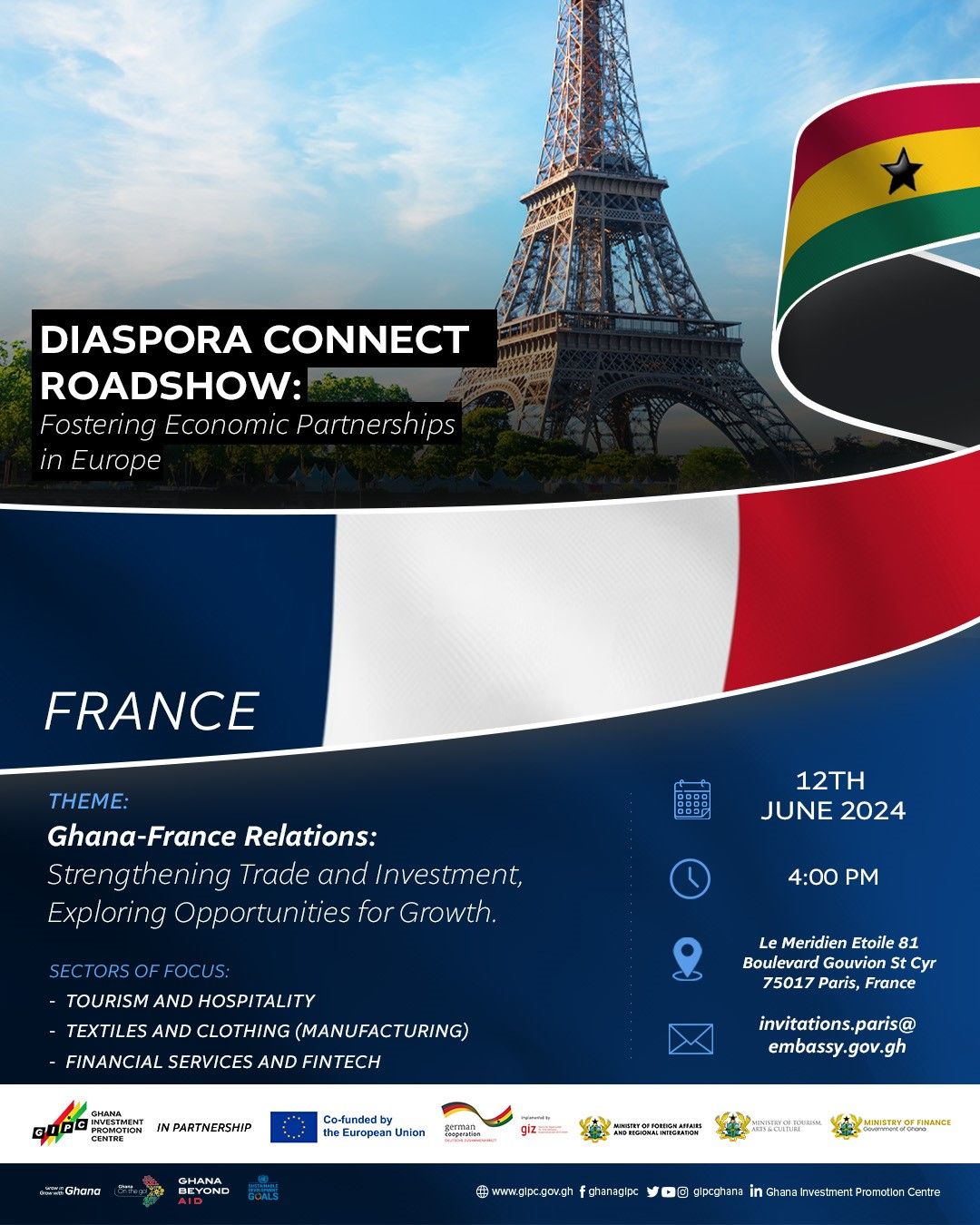The "Ghana Diaspora Connect Roadshow" is a tour that the Ghana Investment Promotion Centre (GIPC) is putting up to take place across Europe from June 8 to June 24, 2024!