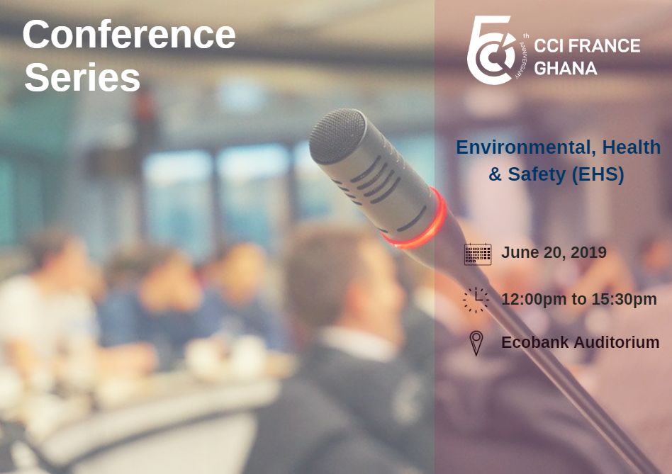 CCI France Ghana is organsing an Environmental, Health, & Safety Conference on June 20 2019 from 12:00pm to 3:30pm at the Ecobank Auditorium located in the Ecobank Headoffice.