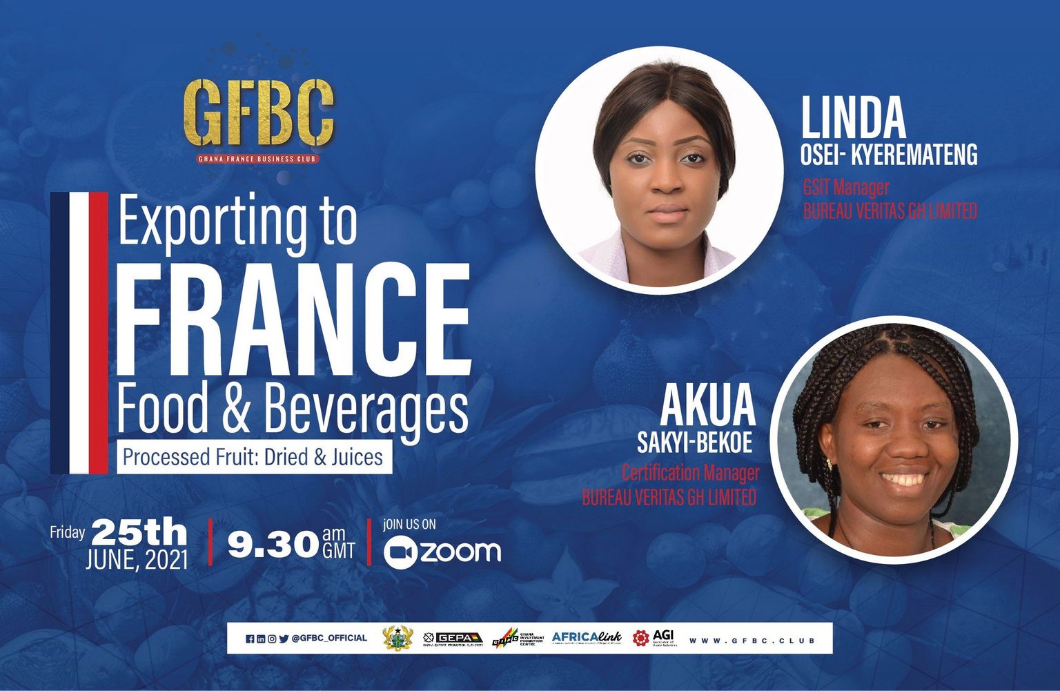 For more on export procedures, certification and regulation for factory owners, join the Ghana-France Business Club this Friday with the Ghana Export Promotion Authority, Association of Ghana Industries and Bureau Veritas for how to export processed fruits (dried and juices) onto the EU and French markets.