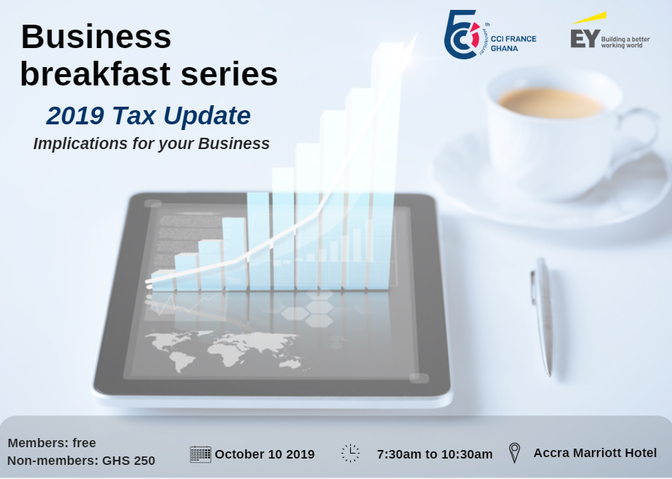 In collaboration with Ernst & Young, CCIFG is organising a Business Breakfast on the Ghanaian Tax System on the 10th of October 2019 at the Accra Marriott Hotel from 07:30am to 10:30am.