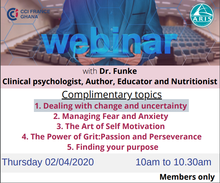 CCI France Ghana is organizing a 5-Week Webinar Series dealing with one topic every week over 30 minutes.