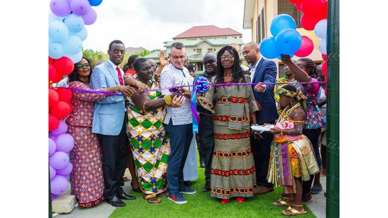 An AstroTurf sports field and playground funded by TechnipFMC Ghana for Twin City Special School, a school for children with intellectual disabilities