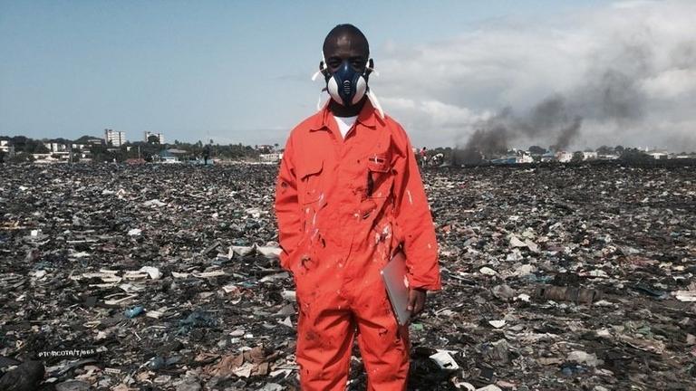 Joseph Awuah-Darko sits on a stool at one of the world’s largest electronic waste dumps, watching polystyrene and insulation cables burn on the…