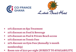 As part of the amazing benefits that come with a CCIFG membership, we offer our members The Privilege Card, which gives you the chance to enjoy a wide range of Discounts and Benefits from Hotels, Supermarkets, Restaurants, Car Dealerships, Mobility & Relocation Services, and many more service providers in Ghana as well as over 50 countries abroad.
