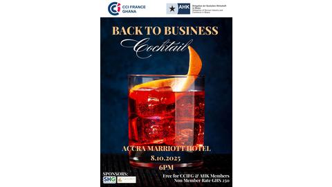 CCI France Ghana and the Delegation of German Industry and Commerce in Ghana (AHK Ghana) present the Back To Business Networking Cocktail. Interact...