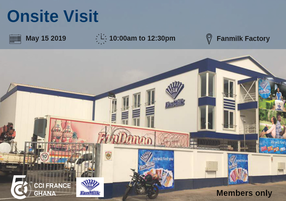 The CCI France Ghana is collaborating with Fanmilk Limited to organise a member-only onsite visit to the Fanmilk Factory on May 15, 2019 from 10:00am to 12:30pm.