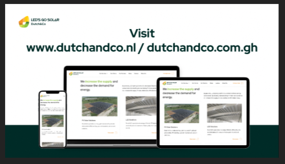 ACCRA, Ghana, 22nd September, 2023 – a leading company providing Solar PV and LED lighting solutions, Dutch & Co. Ltd. has launched a new-look website - www.dutchandco.nl