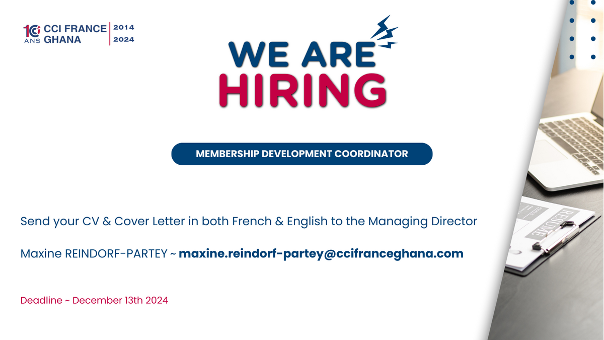 Send your CV in both French and English to maxine.reindorf-partey(@)ccifranceghana.com before December 13th 2024.