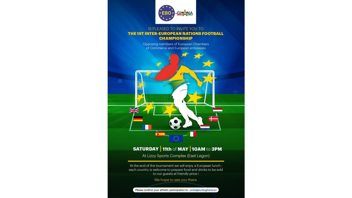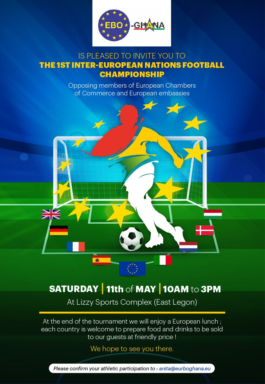 The European Business Organisation is organizing the 1st Inter-European Nations Football Championship which will take place on Saturday, 11 May 2019 at Lizzy Sports Complex at 10am.