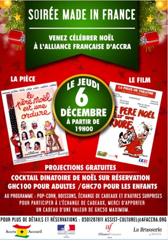 Alliance Française Accra, Accra Accueil and the Embassy of France in Ghana celebrate Christmas with the projection of the french comedy classic "Santa Claus Is a Stinker" known in french as "Le Père noël est une ordure".