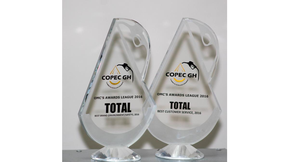 Total Petroleum Ghana has been rewarded with two prestigious awards by the Chamber of Petroleum Consumers (COPEC) Ghana. These awards; Best Customer Service 2016 and Best Brand (Environment / Safety) 2016, were presented to Management by Mr. Duncan of COPEC Ghana on Monday, July 17, 2017.