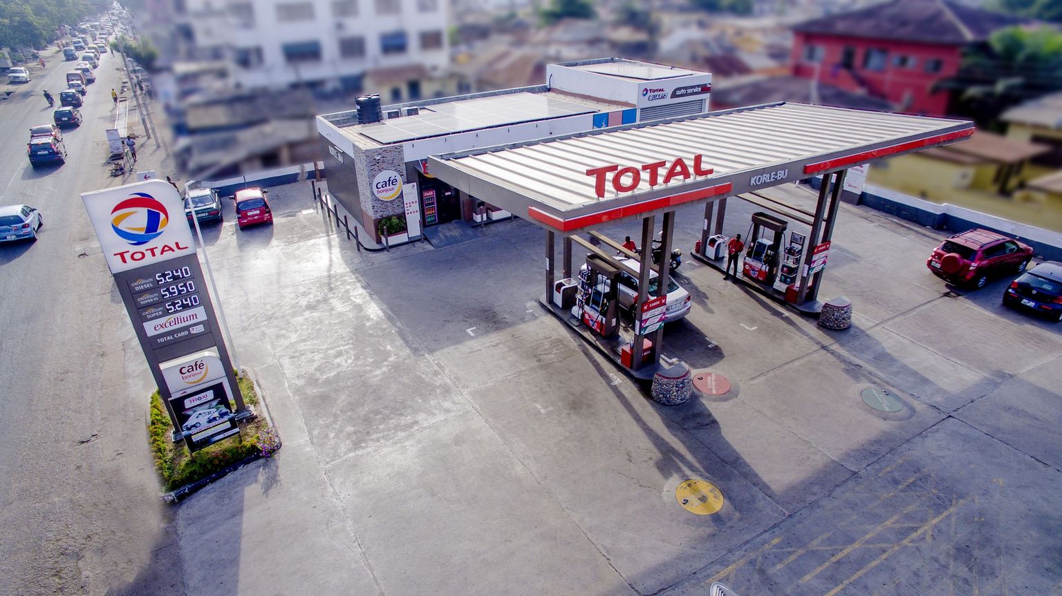 The TOTAL Korle Bu solar-powered station is an integral part of efforts to reinforce Total’s network identity with a resolutely ontemporary image and installations that are more energy-efficient and outlets that blend harmoniously into the environment.