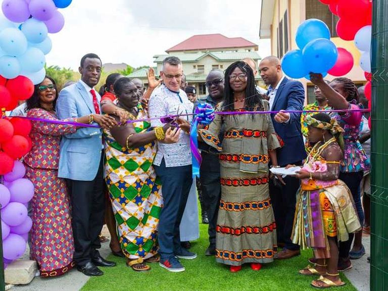 An AstroTurf sports field and playground funded by TechnipFMC Ghana for Twin City Special School, a school for children with intellectual disabilities