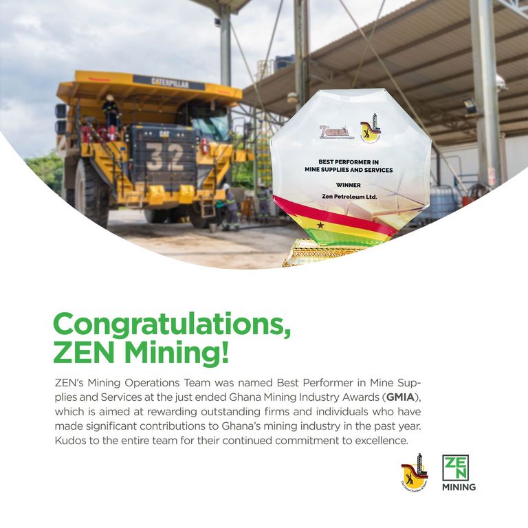 ZEN has been named Best Performer in Mine Supplies and Services at the just ended Ghana Mining Industry Awards organised by The Ghana Chamber of Mines