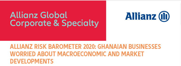 Macroeconomic and Market developments (41% of responses) rank as the most important business risks in Ghana in the ninth Allianz Risk Barometer 2020.