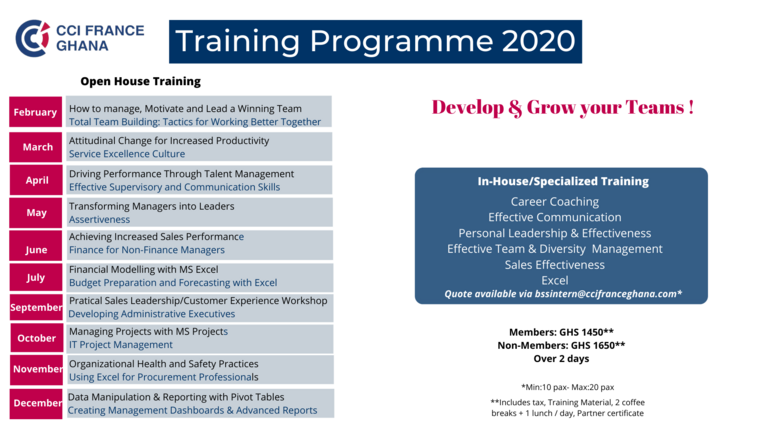 CCI France Ghana is pleased to announce the 2020 Training Programme.