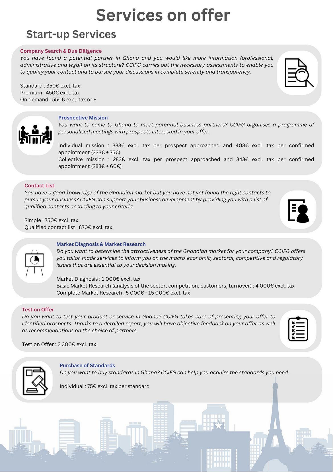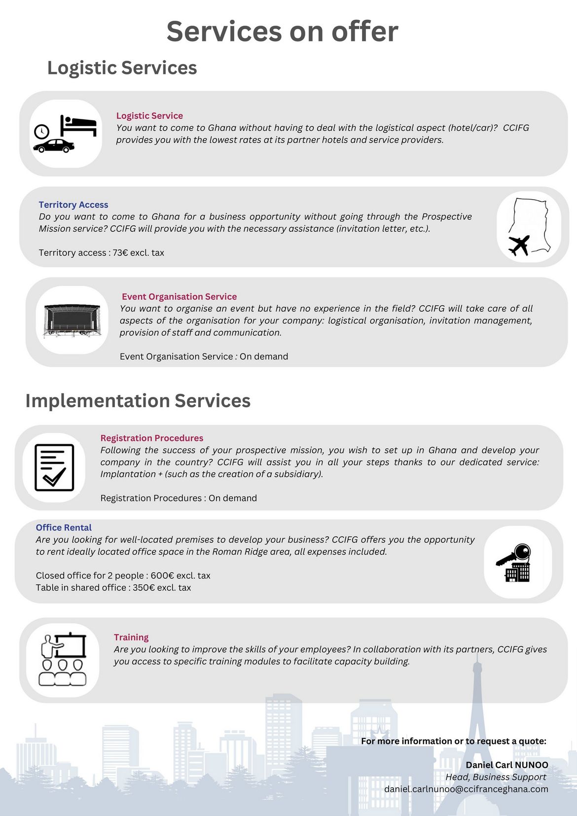 CCIFG promotes bilateral trade, investment and trade relations between Ghana, France and abroad.